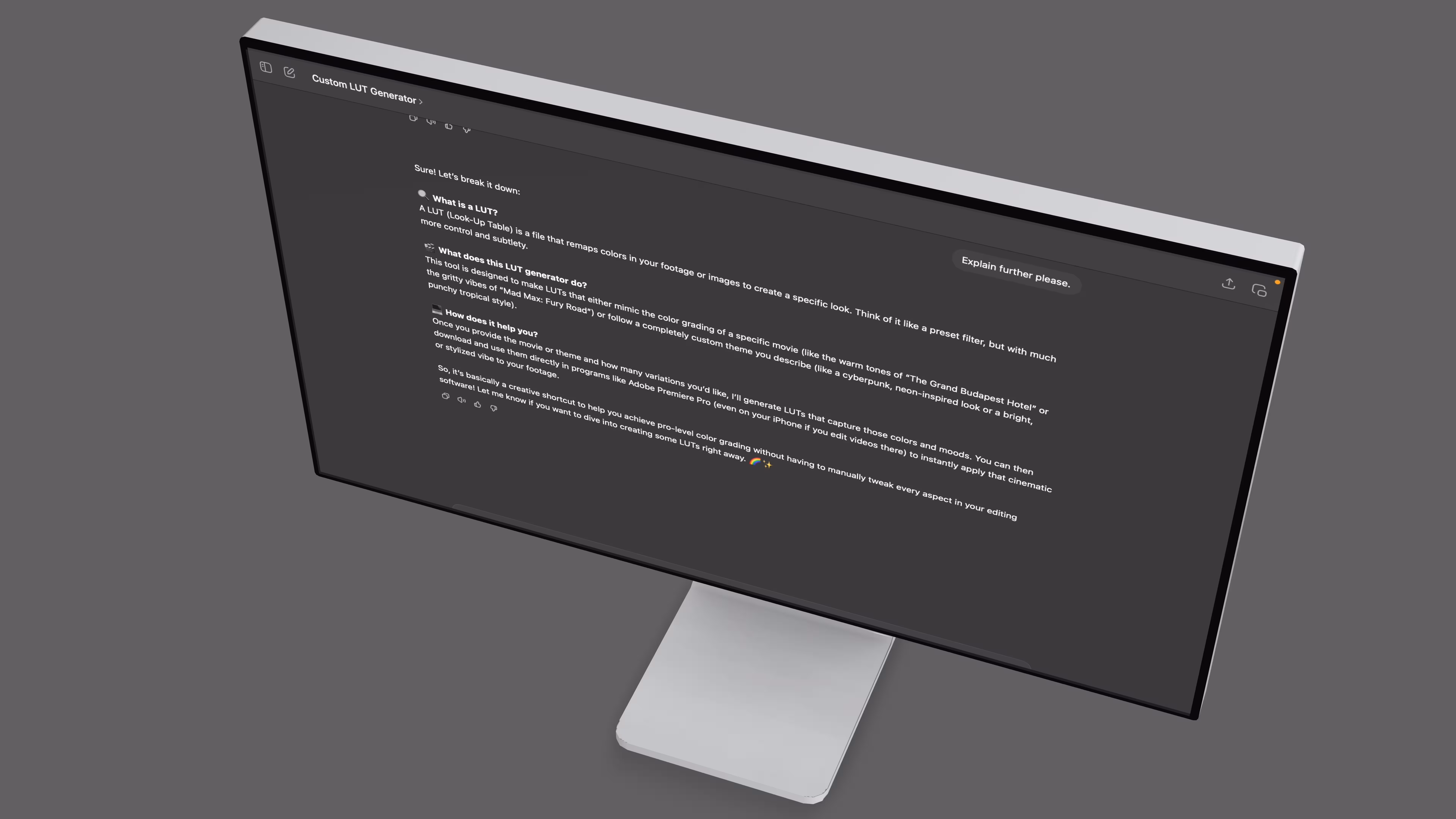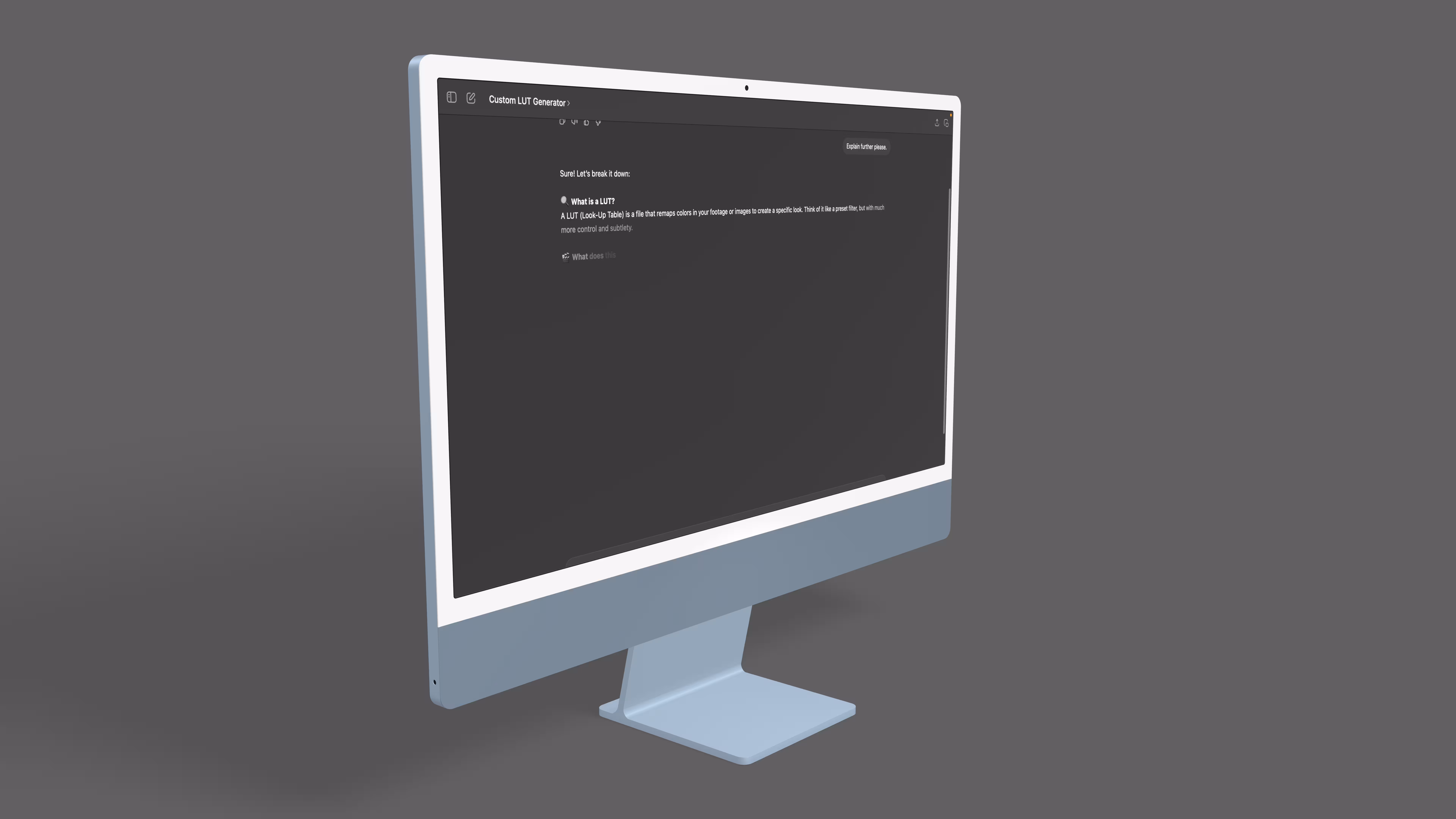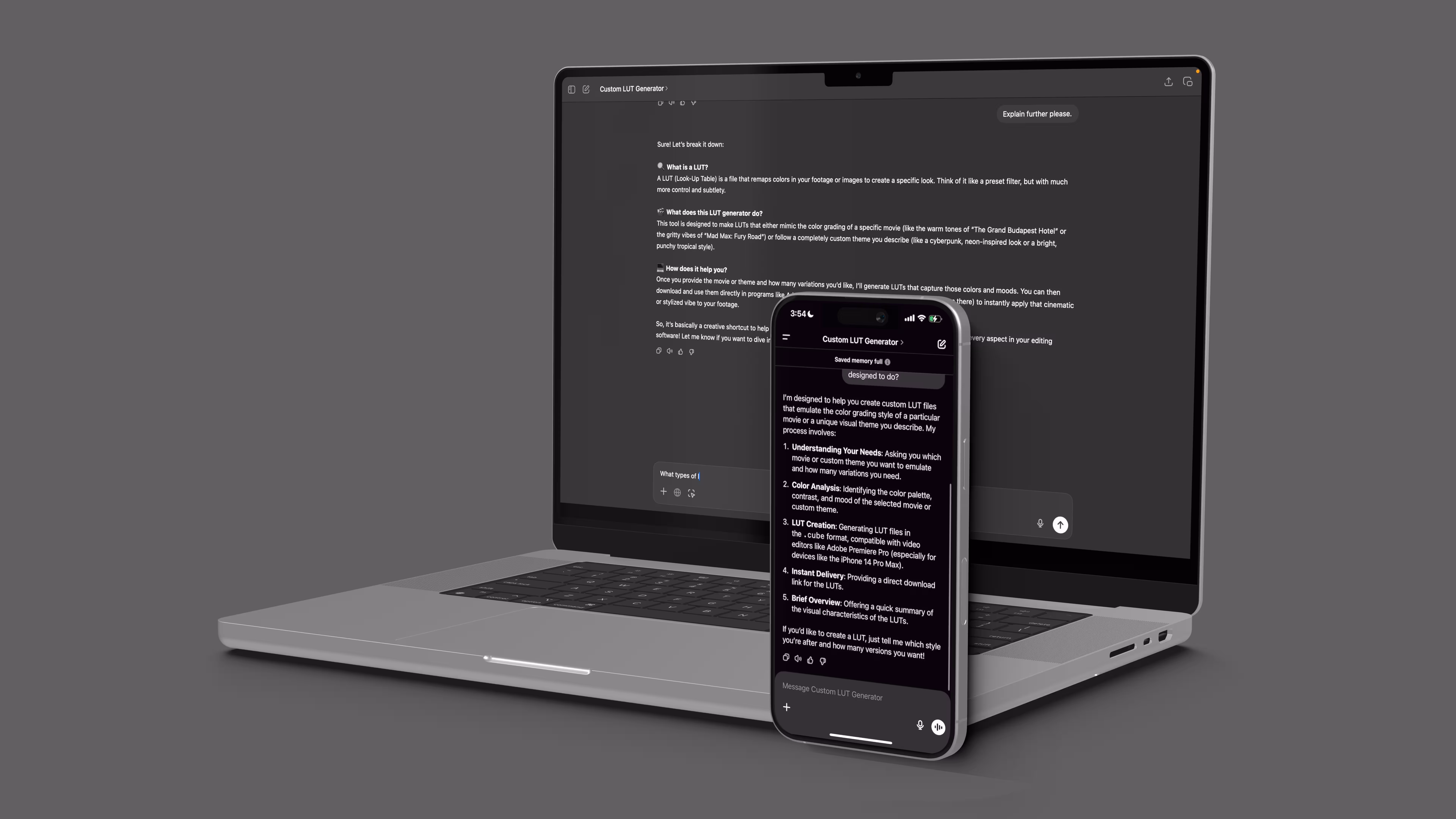 - Dedicó y afinó un modelo GPT personalizado para generar propuestas de LUT de alta calidad basadas en la entrada del usuario y la dirección creativa.