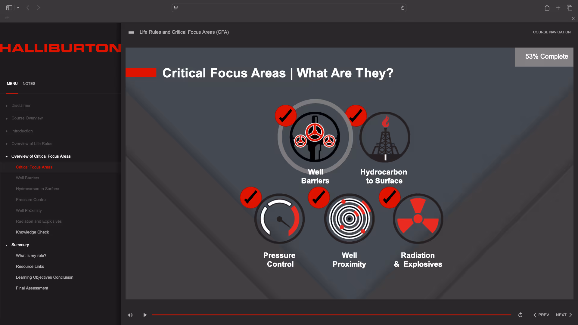 - Eduque os funcionários sobre protocolos críticos de segurança e regras de vida específicas das operações da Halliburton.