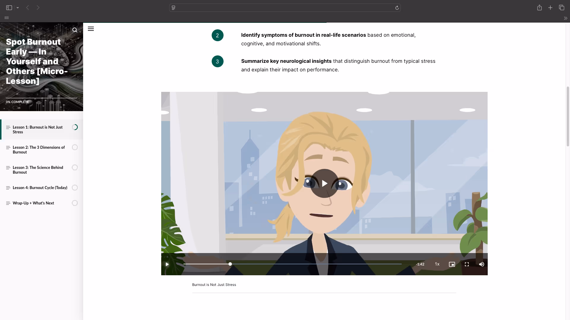 Até o terceiro trimestre do ano fiscal de 25, lance um módulo de burnout baseado em neurociência dentro do ecossistema KF Learn que: