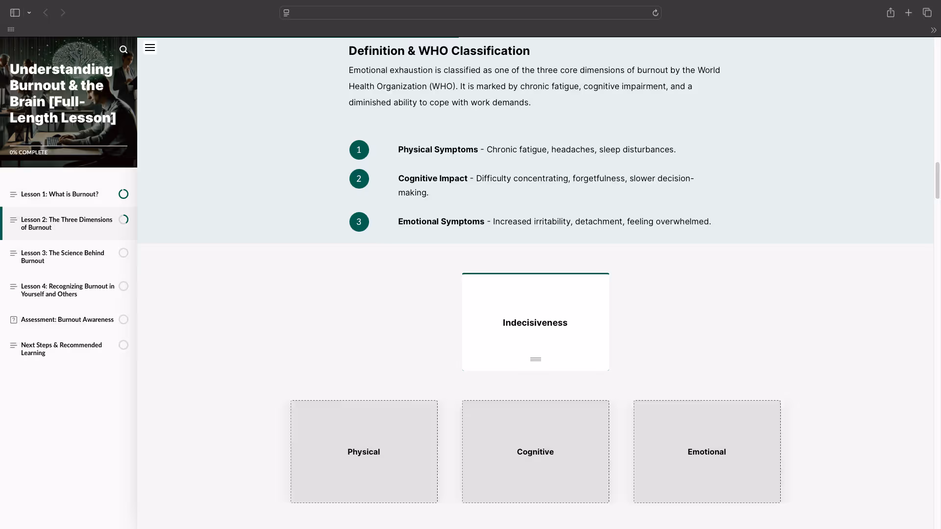 - Descreva como o esgotamento afeta a função cerebral e o desempenho cognitivo